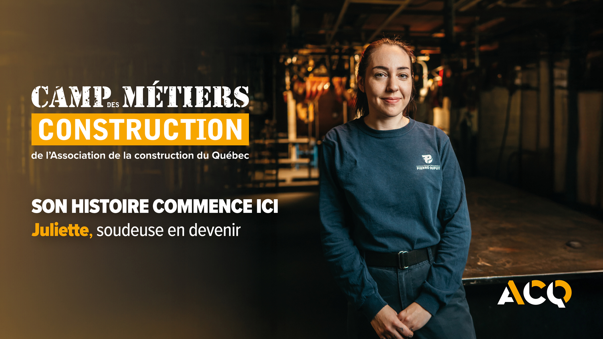 Découvre Juliette, Cindy, Ghizlan et Eren; quatre participants qui ont vécu l’expérience du Camp des métiers Construction à leur façon. À travers de courts témoignages, ils te partagent leur parcours et leur réalité d’aujourd’hui.